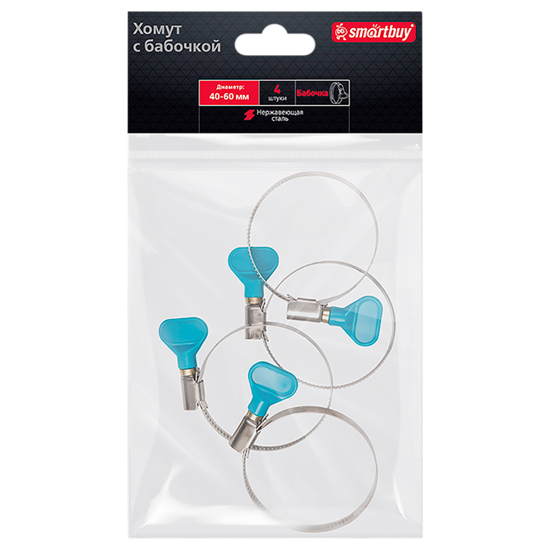 Хомут Smartbuy Бабочка нержавеющая сталь 40-60мм 4шт.