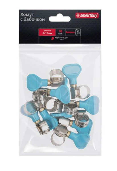 Хомут Smartbuy Бабочка нержавеющая сталь 8-12мм 10шт.