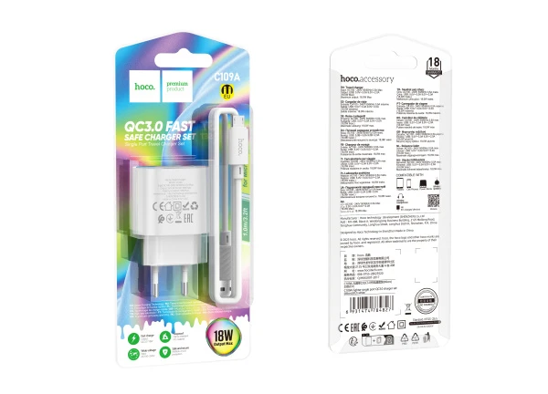 Сетевое З/У HOCO C109A 1USB 3.0A 18W QC3.0 с кабелем microUSB белый (1/27/162)
