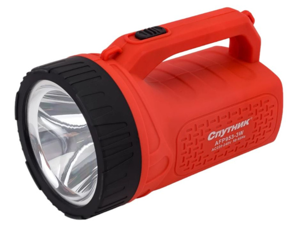 Фонарь туристический Спутник AFP953 3W LED от аккумулятора черный красный