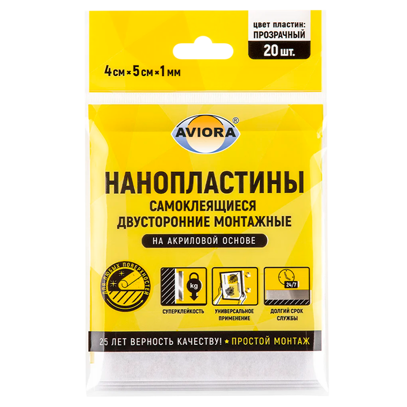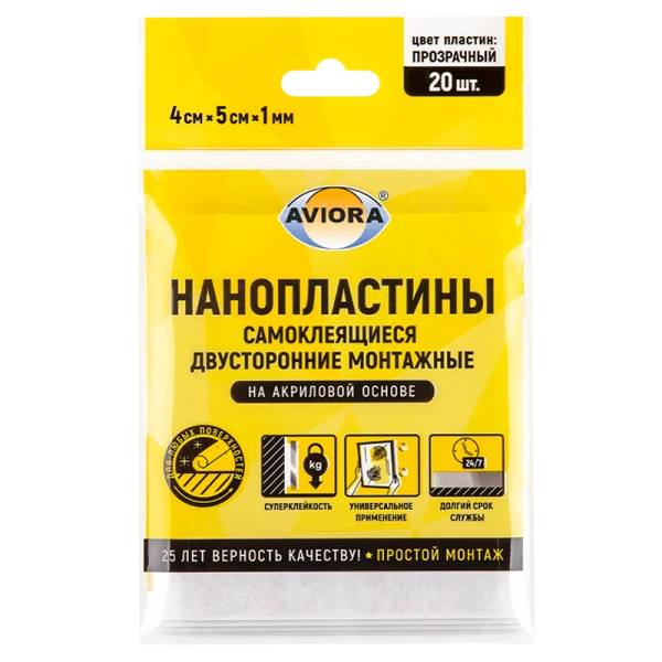 Крючки Aviora Самоклеящийся двусторонние монтажные пластины 1мм*4см*5см 20 пластин/уп (1/30)