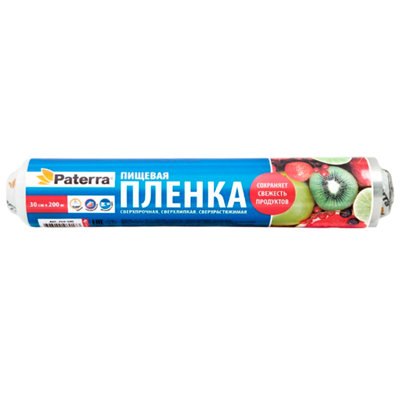 Плёнка PATERRA пищевая отлично тянется и прилипает ко всем видам посуды, обеспечивая герметичность упаковки. Сохраняет свежесть, необходимую влагу и вкусовые качества продуктов. 300мм х 200м.