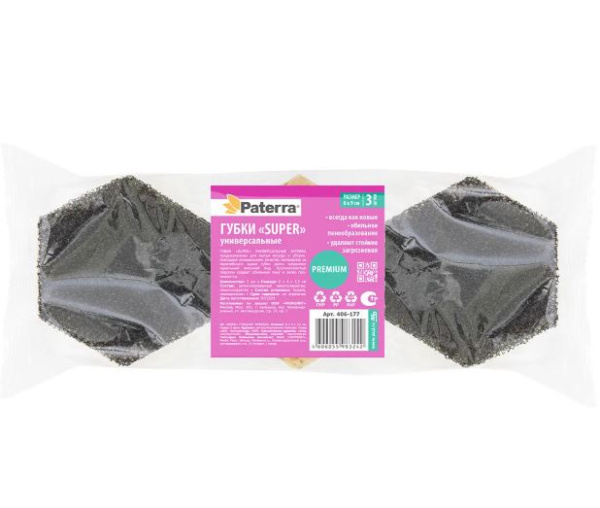 Губка универсальная Paterra "SUPER" 8х9см 3шт. (1/28)