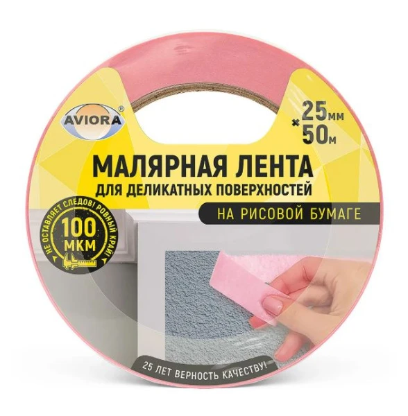 Клейкая лента Aviora 25мм*50м малярная рисовая бумага 100мкм розовый (1/24)