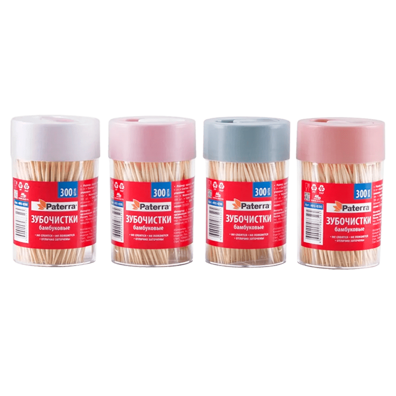 Зубочистки бамбуковые Paterra 300шт. в баночке (4/100)