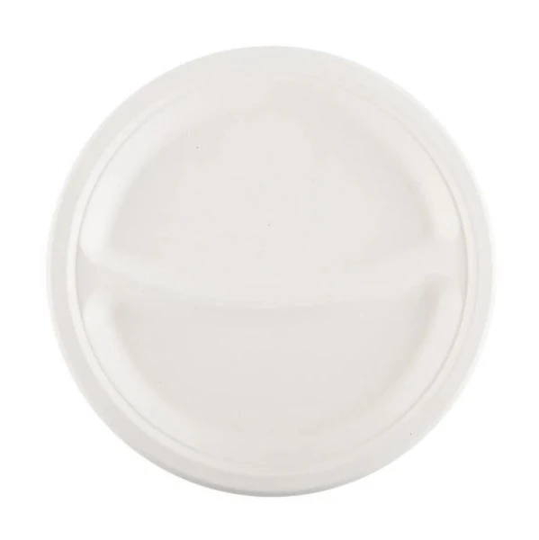 Двухсекционная одноразовая тарелка из сахарного тростника обладает высокими жиро- и влагостойкими свойствами, прочная, не токсичная. Просто утилизируется и полностью разлагается в течение 3-6 месяцев. Выдерживает высокие до + 100 ºС и низкие до -20 ºС температуры. В такой тарелке можно разогревать пищу в микроволновой печи и хранить продукты в холодильнике. Благодаря разделителю, в тарелке не смешиваются блюда.