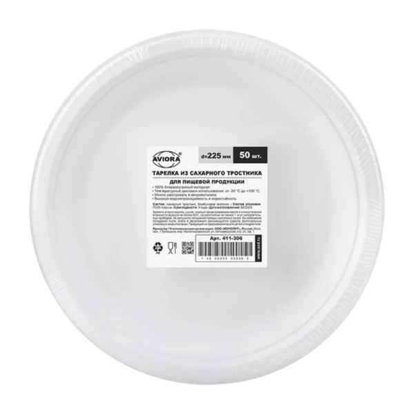 Тарелка Aviora 225мм сахарный тростник 50 шт/уп (цена за штуку) (50/500)
