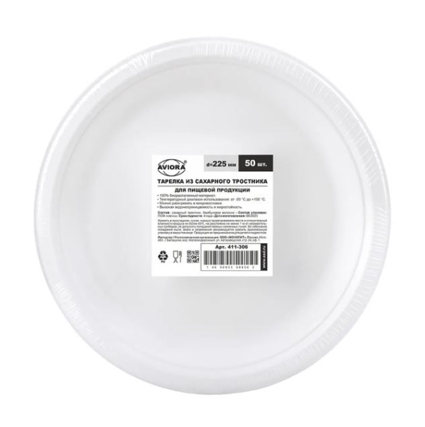 Тарелка Aviora 225мм сахарный тростник 50 шт/уп (1/500)