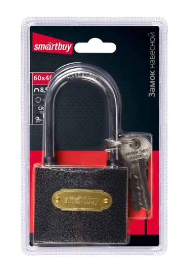 Замок Smartbuy навесной 60х48мм удлиненная дужка 3 ключа (1/60)
