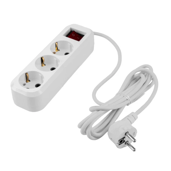 Бытовой удлинитель с выключателем - это универсальный удлинитель, который используется для питания нескольких приборов от одной стационарной розетки. Удлинитель бытовой с заземлением + выкл, розетки, шт. - 3, длина провода, м - 3, цвет - белый, провод - ПВС 3х0,75, номинальная сила тока, А - 16, макс.мощность, Вт - 3500
