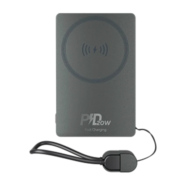 Компактный и эргономичный, повербанк легко помещается в сумке или кармане. Оснащен технологией быстрой беспроводной зарядки, что экономит время и обеспечивает удобство в использовании. Имеет несколько выходных портов и кабель для зарядки в комплекте, что позволяет заряжать несколько устройств одновременно.