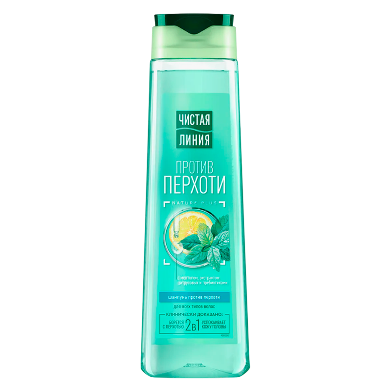 Женский шампунь для волос от перхоти Чистая линия – это новое эффективное уходовое средство для локонов с ментолом и мятой. Шампунь против перхоти женский подходит для всех типов волос. Очищающий шампунь Чистая линия удаляет видимую перхоть при регулярном использовании. Шампунь с эссенцией PLUS обогащен натуральными ингредиентами. Шампунь содержит 5 экстрактов и масел: экстракты шалфея, шиповника и вербены, масла льна и миндаля. Шампунь Чистая Линния не имеет в своем составе силиконов. Шампунь Чистая линия с действием 2в1 устраняет перхоть и успокаивает кожу головы. Шампунь с ментолом, экстрактом цитрусовых и пребиотиками эффективно очищает кожу головы, избавляет от шелушения и раздражения, нормализует жирность кожи головы.