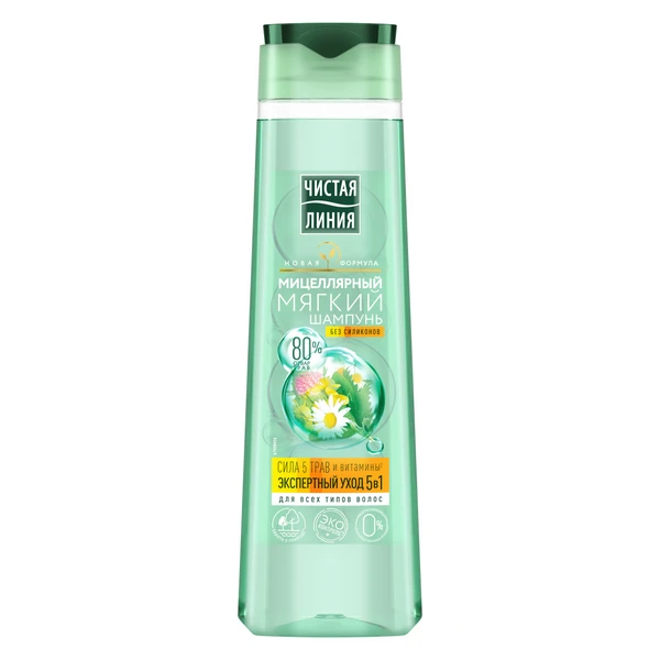 Шампуни и Бальзамы ЧИСТАЯ ЛИНИЯ со знаком ЭКОконтроль гарантируют экологическую чистоту и пользу входящих трав. Травы в составе продуктов ЧИСТАЯ ЛИНИЯ имеют паспорт качества и проходят многоступенчатый контроль экологической чистоты. ЧИСТАЯ ЛИНИЯ гарантирует эффективность: следит за соблюдением уровня активных веществ, использует только самые эффективные части растений, занимается клиническими исследованиями отвара трав. Эксперты Института Чистая линия создали коллекцию инновационных средств по уходу за волосами на мицеллярной основе. Они не раздражают чувствительную кожу головы, сохраняют ее гидролипидный баланс и не пересушивают волосы, даже при ежедневном мытье. Мицеллярный шампунь создан для мягкого очищения волос без сухости, 5 действий в 1 шампуне.