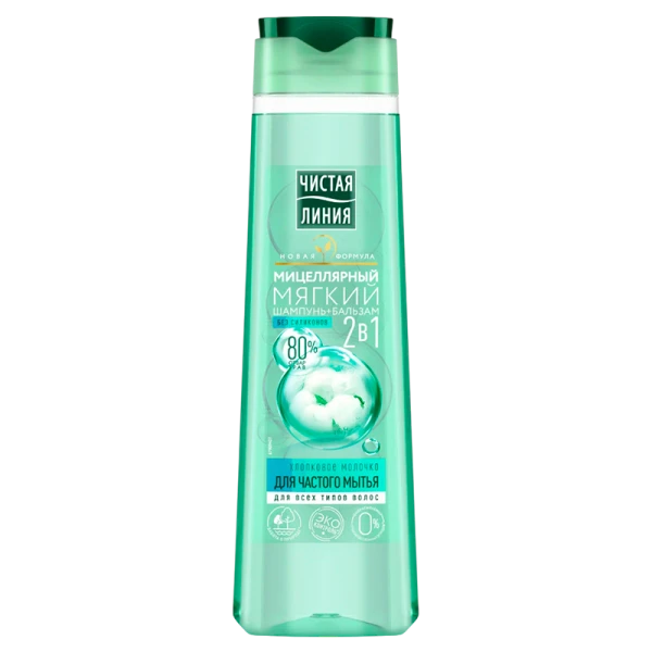 Мицеллярный шампунь-бальзам Чистая линия 2в1 очищает волосы, а натуральные компоненты в его составе активно ухаживают за ними.