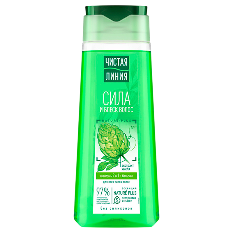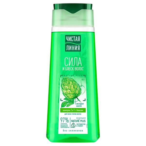 Шампунь Чистая линия Фитотерапия 2 в 1, который сочетает в себе мягкое очищение шампуня и уход кондиционера для волос. Продукт на 97% состоит из компонентов натурального происхождения и подходит для всех типов волос. Новая формула шампуня содержит эссенцию Nature Plus из 5-и экстрактов и масел. Бальзам в составе облегчает расчесывание, смягчает и придает блеск. Активные натуральные компоненты предупреждают выпадение, питают и защищают волосы от повреждений: