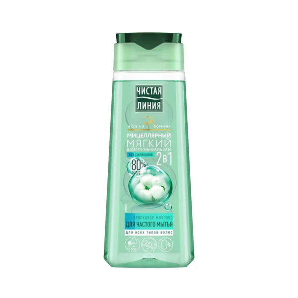 Чистая Линия шампунь бальзам мицеллярный мягкий для частого мытья 2в1 хлопковое молочко 250 мл