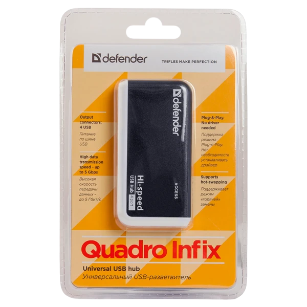 Универсальный USB разветвитель Defender Quadro Infix 4USB, черный.