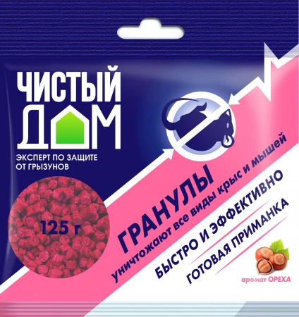 Гранулы родентицид Чистый дом от крыс и мышей с запахом ореха 125г (1/50)