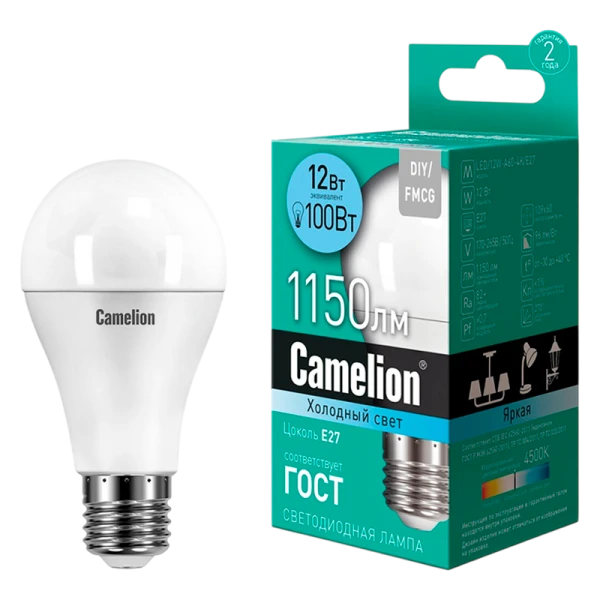 Лампа светодиодная Camelion A60 E27 12W 4000К 220V груша матовая (1/10/100)