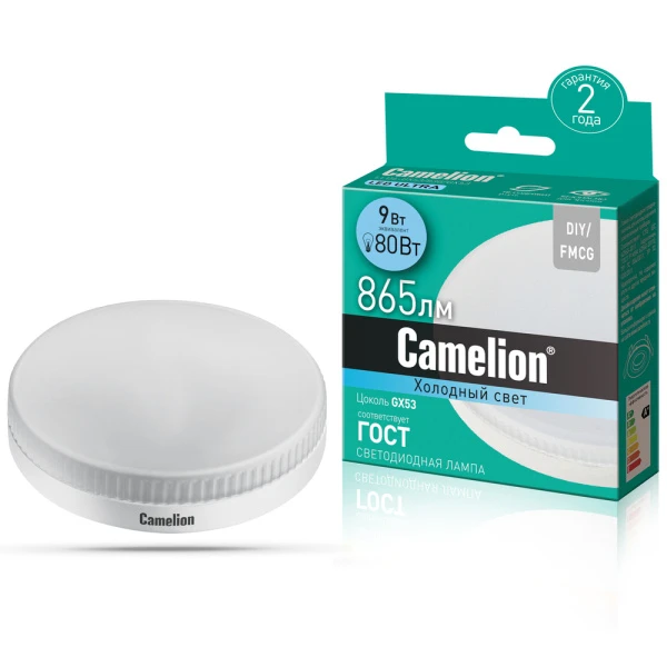 Лампа светодиодная Camelion GX53 9W 4000К 220V таблетка матовая (1/5/100)