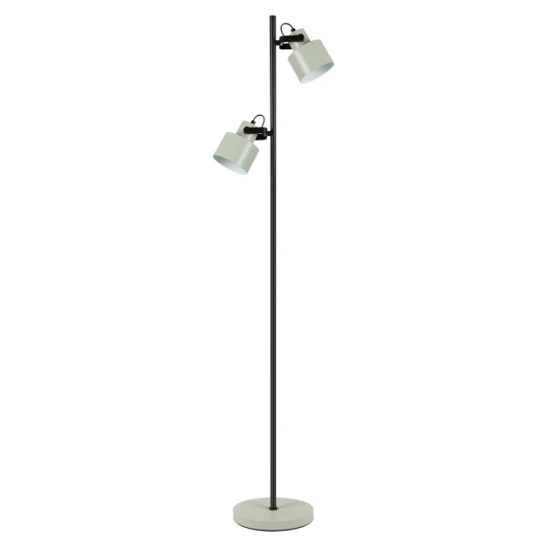 Напольный светильник трендового дизайна с классической конструкцией под цоколь Е27 и максимальной мощностью до 40 Вт может использоваться с разными источниками света - лампой накаливания, компактной люминесцентной лампой (КЛЛ) или светодиодной (LED) лампой. Два регулируемых цилиндрических плафона позволяет настроить угол освещения в нужном направлении. Декоративные акценты на плафоне придают светильнику изысканность и утонченность. Лаконичная форма и плавные линии корпуса подчеркивают минималистичный дизайн, который будет гармонично смотреться как в современных, так и в классических интерьерах. Выключатель расположен на проводе. Устойчивое основание. Сочетание черного металла с элементами контрастным цветом делает лампу ярким акцентом в любом помещении.