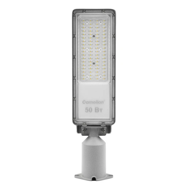 Светодиодные уличные светильники Camelion поворотной серии – это надежное, функциональное и практичное решение для наружного освещения. Прекрасно подойдет для освещения улиц, дорог, парков, придомовых территорий, коттеджных поселков и спортивных площадок. Монтаж светодиодных светильников поворотной серии возможен не только традиционным способом на вертикальные опоры, но также и на горизонтальные поверхности, при этом угол наклона регулируется вверх и вниз на 15˚ Поэтому, если опоры нет, то светильник можно закрепить, например, на стене. Тип кривой силы света «Ш», что обеспечивает рассеивание света на 140˚ - максимальный охват площади, требующей освещения. Диоды у данных светильников линзованные с помощью поликарбонатной линзы, устойчивой к УФ излучению – рассеиватель сохраняет прекрасный внешний вид весь срок своей службы. Кроме того, такой тип линзы не дает бликов и обеспечивает максимально комфортное освещение. Корпус светильника ультратонкий, выполнен из алюминия, который отлично отводит лишнее тепло от