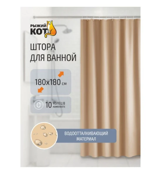 Штора для ванной Рыжий кот 180х180см бежевый (1/10/40)