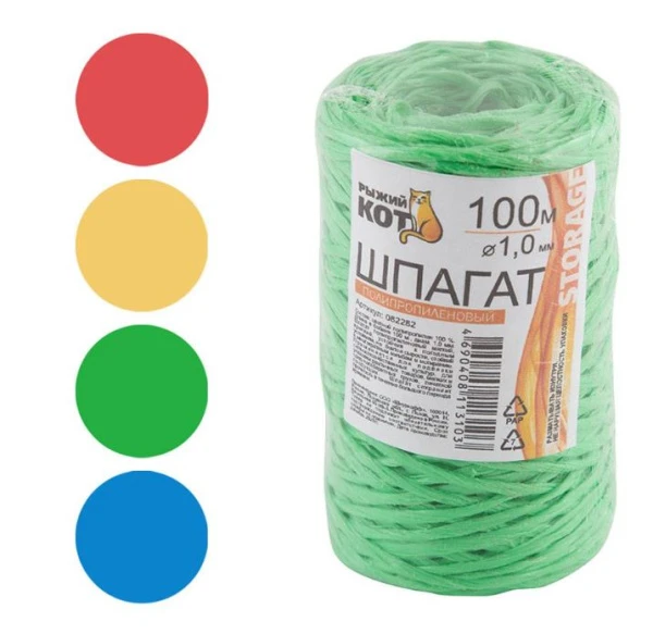 Шпагат ПП Рыжий кот бобина диаметр 1.0мм 100м. ассорти (1/5/165)