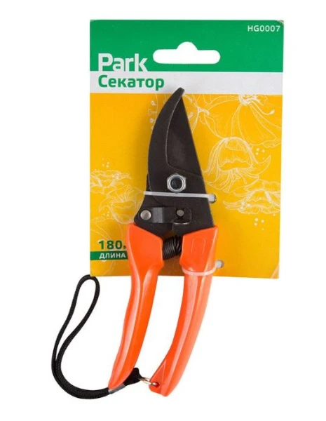 Секатор PARK HG0007 тип механизма: рычажный тип лезвий: плоскостной с верхней защелкой материал: сталь, антикоррозийное покрытие, пластмасса, пвх длина: 180 мм вес: 120 г диаметр среза до 10 мм