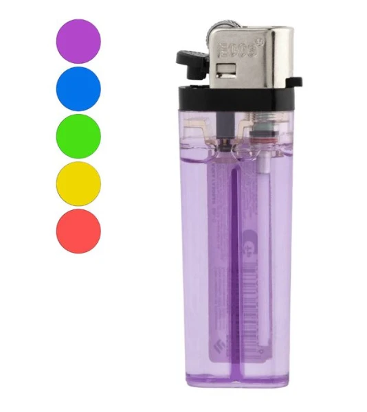 Материал: пластмасса, металл Размер: 72.2*22.5*11мм Способ поджига: кремниевая Цвета в ассортименте: зелёный, красный, жёлтый, фиолетовый, синий Турбонаддув: нет Форма зажигалки: классическая Объем, мл: 9 Вес газа ~ 1,1-1,3 г/шт, ±5% Вид зажигалки: зажигалка-свеча Регулировка пламени: да Картонная коробка цветная. (50 шт. зажигалок внутри). Пластиковый поддон для фиксации при хранении и выкладке.
