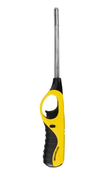 Универсальная зажигалка для безопасного воспламенения газа. С газом, с возможностью дозаправки. Регулятор уровня пламени, многоразовая заправка сжиженным газом (пропан, бутан), блокировка кнопки поджига, гибкий носик, подвес, функция защиты от ветра Позволяет развести огонь при сильном ветре. Благодаря технологии двойного пламени - пламя горит сильно и ровно. Гибкий носик позволяет регулировать направление огня и разжечь огонь в труднодоступных местах. Идеально подходит для поджига свечей, грилей для барбекю и других целей. Размер: 26,7*5,5*2,45см