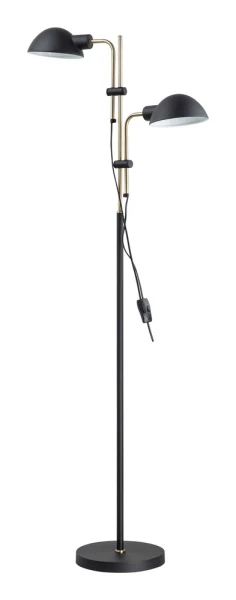 Светильник переносной, торшер металлический премиум класса двухламповый. Светильник послужит украшением любого интерьера. Имеет два плафона диаметром 175мм и основание диаметром 250 мм матового черного цвета и стойку с гальваническим покрытием цвета бронзы. . 40 Вт, Е27. Выключатель проходной на проводе.