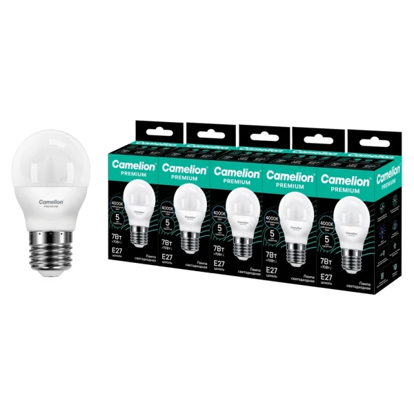 МК_Сamelion Premium LED7-G45-840-E27 (Эл.лампа светодиод шар 7Вт E27 4000K) (5 шт шринк из 16273)