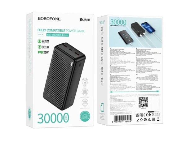 Внешний аккумулятор Borofone BJ56B 30000mAh 3.0A 2USB+Type-C PD20W черный (1/24)